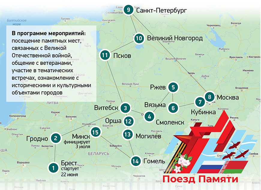 выезд (Брест) 22 июня - прибытие 3 июля (Минск)